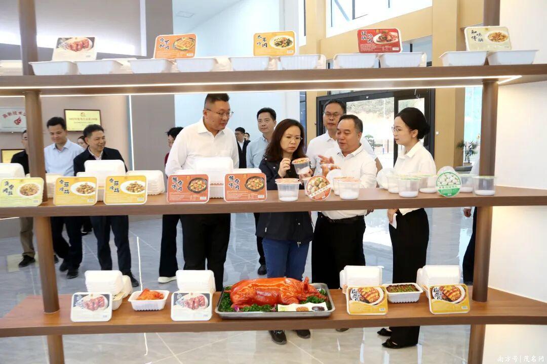 在粤信禽畜加工基地,调研组深入生猪屠宰车间和熟食加工区。自动化设备精准作业,冷链仓储井然有序,负责人讲述“公司+基地+农户”模式如何带动2万多农户参与养殖。1月试投产的基地,设计年屠宰产能达生猪百万头、牛羊数十万头,同步拓展预制菜等精深加工,预计年产值超10亿元。