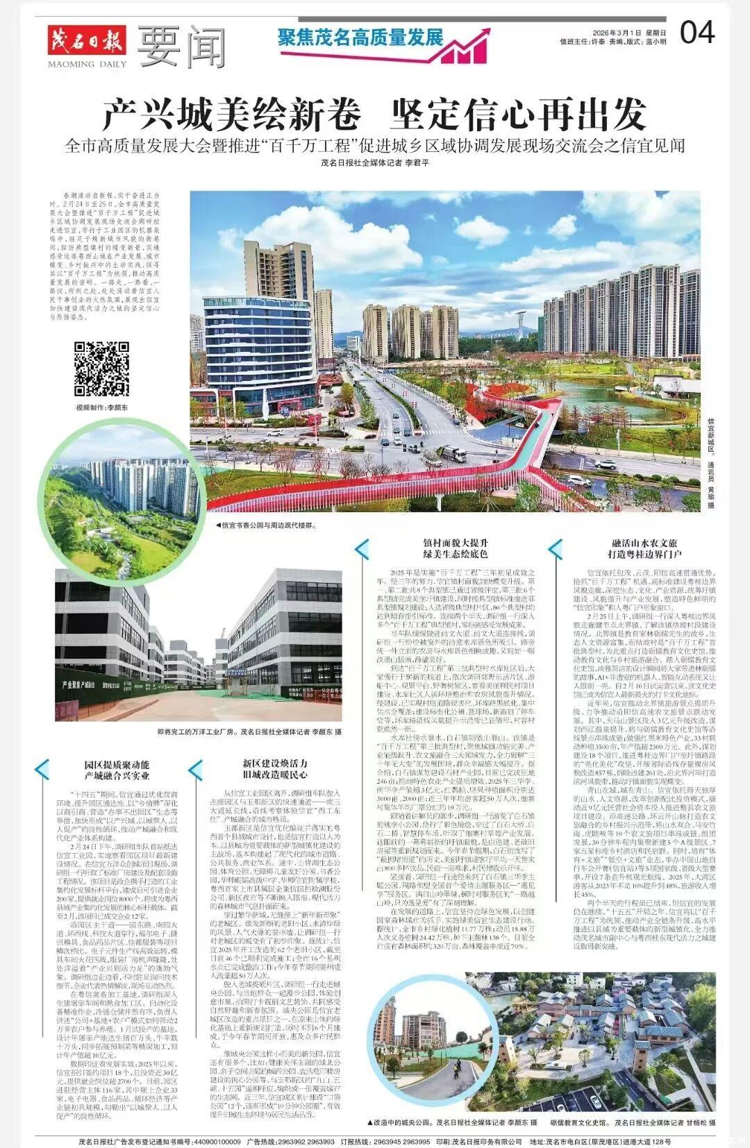 两个半天的行程虽已结束,但信宜的发展仍在继续。“十五五”开局之年,信宜将以“百千万工程”为统领,推动产业全链条升级,高水平推进以县城为重要载体的新型城镇化,全力推动茂名城市副中心与粤西桂东现代活力之城建设取得新突破。