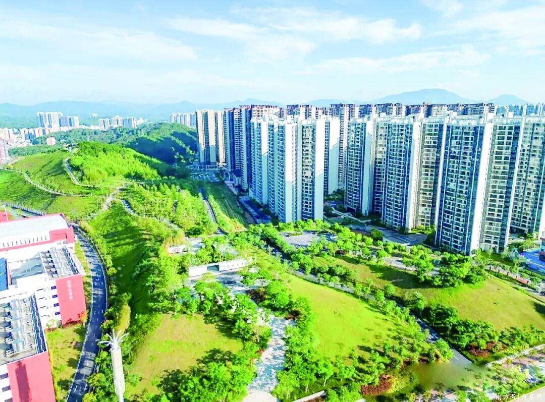 信宜书香公园与周边现代楼群。通讯员 黄瑜 摄